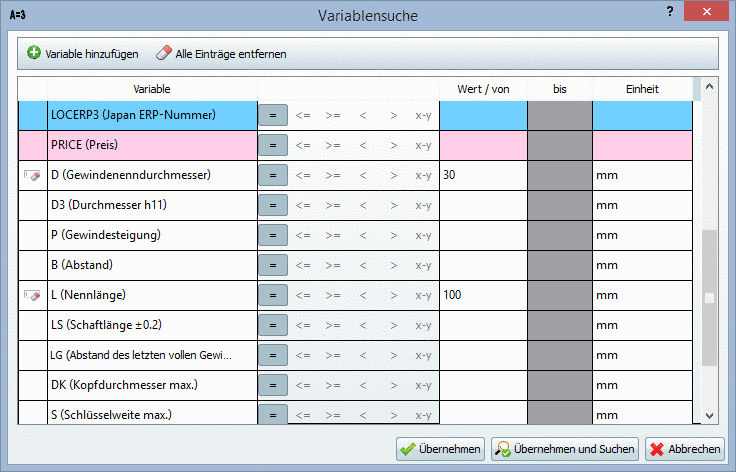 gekennzeichnet.Alternativ hätten Sie das Dialogfenster Variablensuche ebenso mit Klick auf den Link
