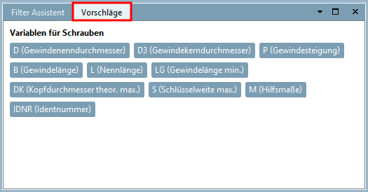 Die gemeinsamen Variablen werden auch im Dialogbereich Vorschläge angezeigt. Siehe hierzu auch Abschnitt 3.1.6.4.5.2, „Variablensuche: Aufruf aus Dialogbereich "Vorschläge"“.