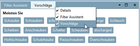 Bei einem Tippfehler wie z.B. "Schaube" erhalten Sie als ersten Vorschlag den korrekten Begriff "Schraube".