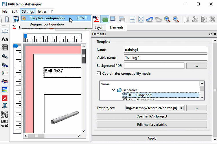 Beim Editieren in PARTtemplateDesigner erfolgen Angaben in mm. Die Werte werden dann im Template in PDF-Koordinaten umgerechnet.