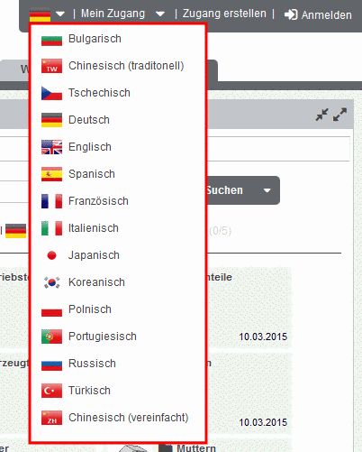ein Drop-Down-Menü mit allen verfügbaren Sprachen.