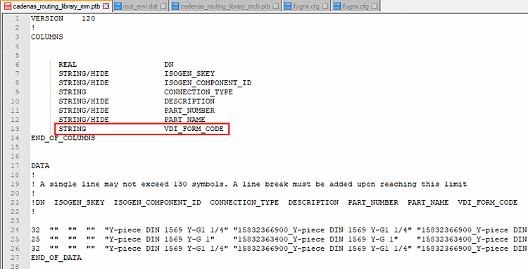 cadenas_routing_library_mm.ptbbzw.cadenas_routing_library_inch.ptbdeklariert werden [die Werte werden dann ausifugnx.cfg->CadPipingAttributesgeholt]. Mit HIDE ausgezeichnete Merkmale werden nicht angezeigt. (Entfernen Sie evtl. das HIDE bei schon angelegten.)