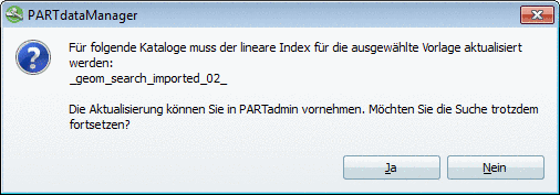 Evtl. erscheint eine Meldung, dass der lineare (geometrische Index) nicht aktuell ist.