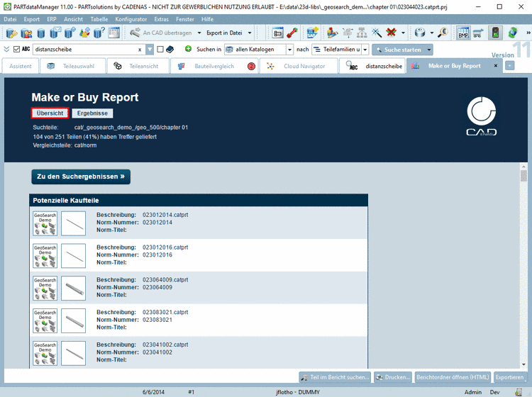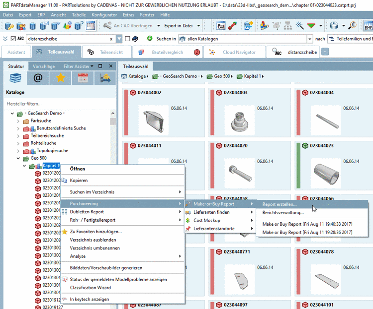 Um zu überprüfen, welche Eigenteile evtl. durch Kaufteile ersetzt werden können, wählen Sie den Make-or-Buy Report.