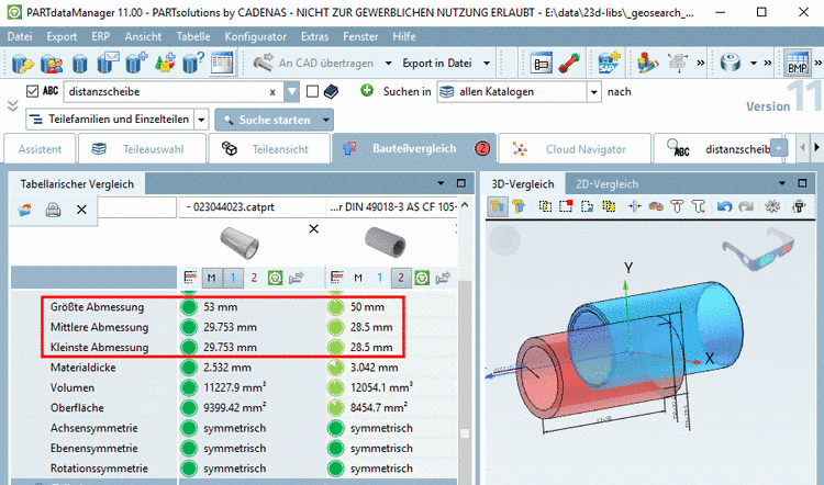 den Bauteilvergleich laden.Details zum Bauteilvergleich finden Sie unter Abschnitt 3.1.6.10, „Bauteilvergleich“.