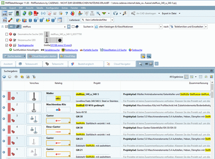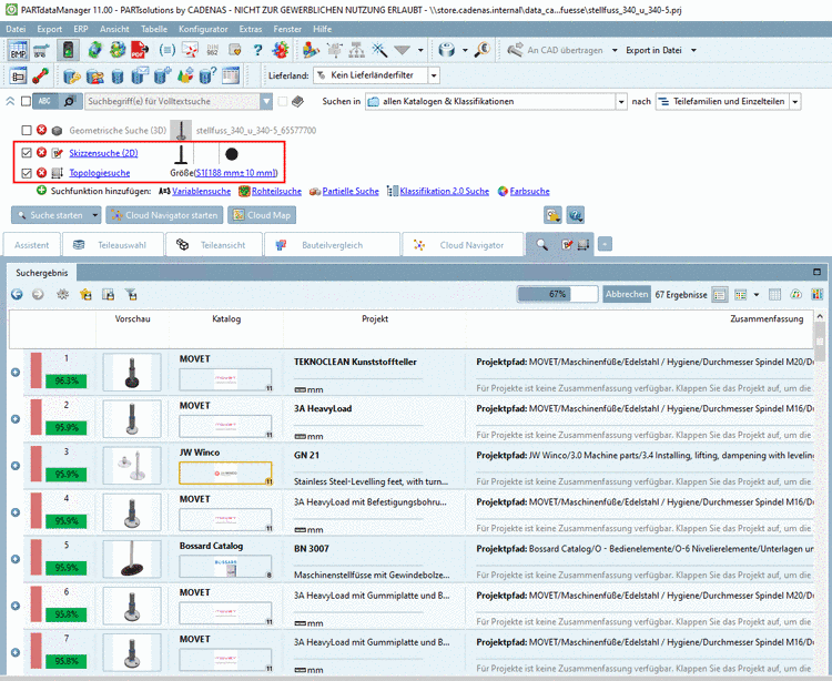 Die geometrische Suche kann allerdings nur bedingt Teile mit abweichender Geometrie finden, die aber ebenfalls in Frage kommen würden (außer der Suchbereich wird erweitert).