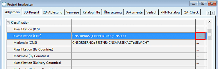 Selektieren Sie auf der Registerseite Allgemein [General] die Klassifikation (CNS) und klicken Sie .