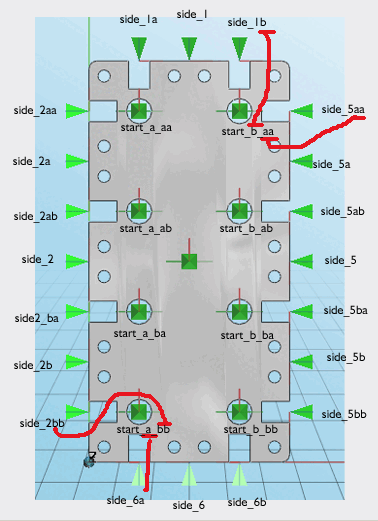 Der Anfügepunkt im Zentrum des Profilquerschnitts heißt start, die anderen werden aufgezählt mit start_a, start_b etc.