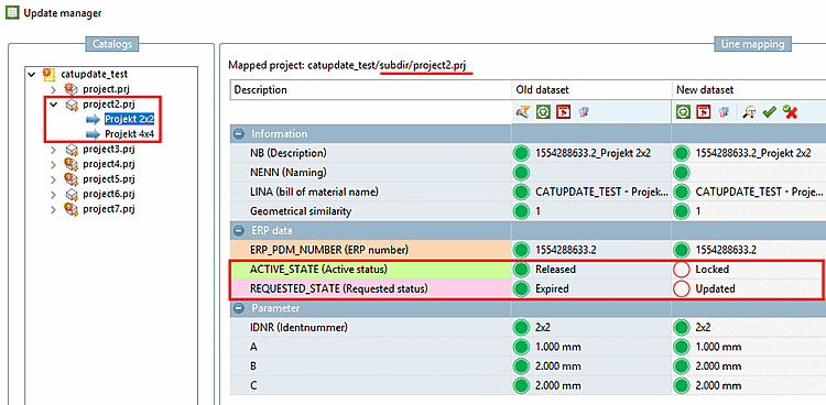 Die einzige Werteänderung zwischen altem und neuem Datensatz besteht nur bei den Variablen "Active State" und "Requested State" (vgl. Abschnitt 4.15.3.5.1, „ACTIVE_STATE und REQUESTED_STATE “).