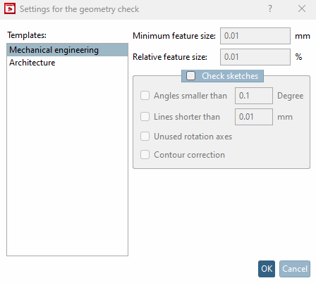 Geometrie auf CAD Kompatibilität testen [Test geometry on CAD compatibility] : Überprüfen der Bauteilgeometrie auf geometrische Integrität.