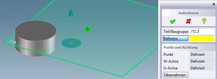 Unter Teil/Baugruppe das Bauteil / die Baugruppe wählen und direkt mittels