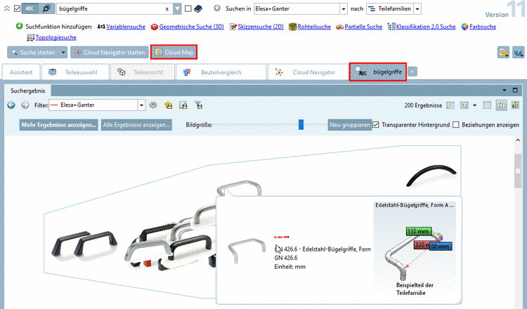 • Wenn Sie Cloud Navigator starten klicken, werden die Suchergebnisse unterhalb auf der Registerseite Cloud Navigator dargestellt.