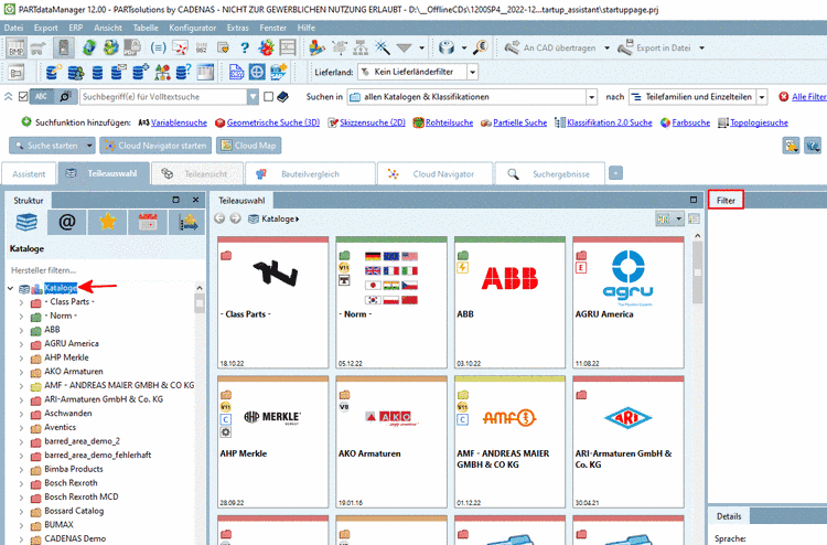 • Filtersuche über alle Kataloge