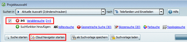 -> Das Dialogfenster Variablensuche CloudNavigator öffnet sich.