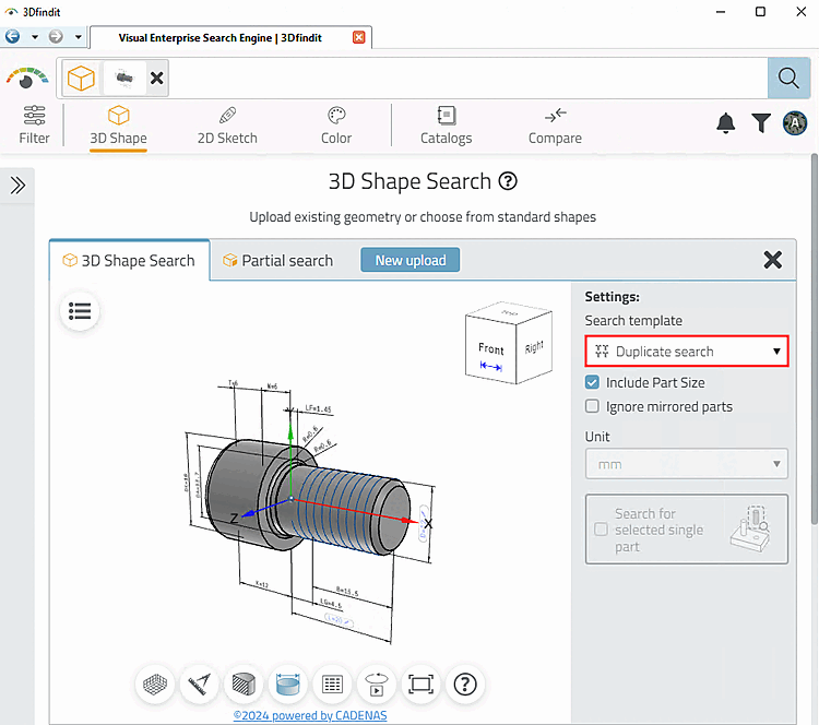 Die Suchvorlage Dubletttensuche [Duplicate search] ist von der Algorithmenauswahl darauf optimiert, bei sehr ähnlich Teilen gut zu funktionieren, die Reihenfolge bei niedrigeren Prozentsätzen ist eventuell schlechter als bei der normalen Suche.