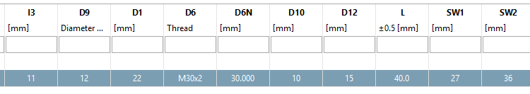 Maßtabellen müssen im CSV/XLS Format geliefert werden. Die Inhalte können so i.d.R. ohne Verluste in das System importiert werden. Der Auftraggeber deklariert an dieser Stelle ggf. auch Variablennamen, Variablenbezeichnungen, Variableneinheiten sowie die Inhalte von Auswahlfeldern. Die Tabelle deckt alle geometrisch nötigen Varianten ab und enthält, sofern erforderlich, auch alle zur Konstruktion notwendigen Hilfsmaße sowie technische Details. Siehe Abschnitt 7.12.17, „ Tabellen Import “.