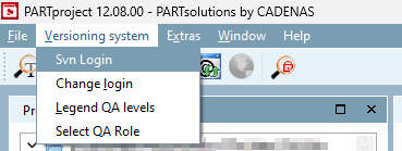 Das Menü Versionsverwaltung [Versioning system] ist interessant, wenn Sie mit PARTproject QA arbeiten. Details hierzu finden Sie unter Kapitel 6, PARTproject QA .