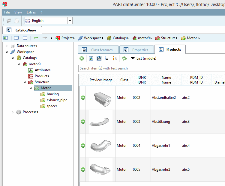 Selektieren Sie im Struktur [Structure]-Baum die Klasse, welcher das Produkt zugewiesen war. Das Produkt wird nun wieder angezeigt (als geändert
