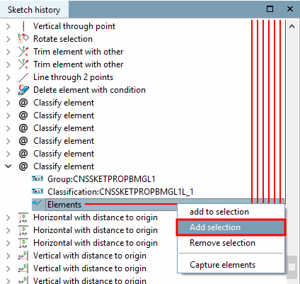 -> In der Sketch Historie [Sketch history] wird die Beziehung zwischen Formelement und Klassifikation per rotem Pfeil repräsentiert.