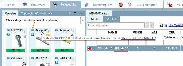 Es werden die geometrisch ähnlichen Teile angezeigt.