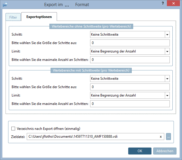 Wertebereiche ohne Schrittweite (pro Wertebereich)