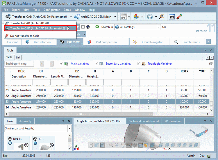 2. Klicken Sie im Export-Listenfeld auf Transfer to CAD (ArchiCAD (Parametric)).