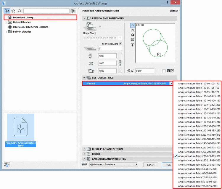 3. Selektieren Sie Embedded Library und öffnen Sie das Listenfeld unter CUSTOM SETTINGS.