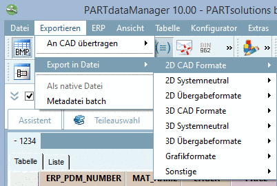 Folgende 2D CAD Formate und 2D Systemneutral Formate stehen für den Export ohne PARTsolutions-Schnittstelle zur Verfügung: