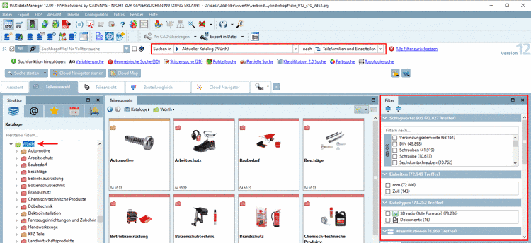 -> Unter Suchen in wird Aktueller Katalog (Würth) angezeigt.