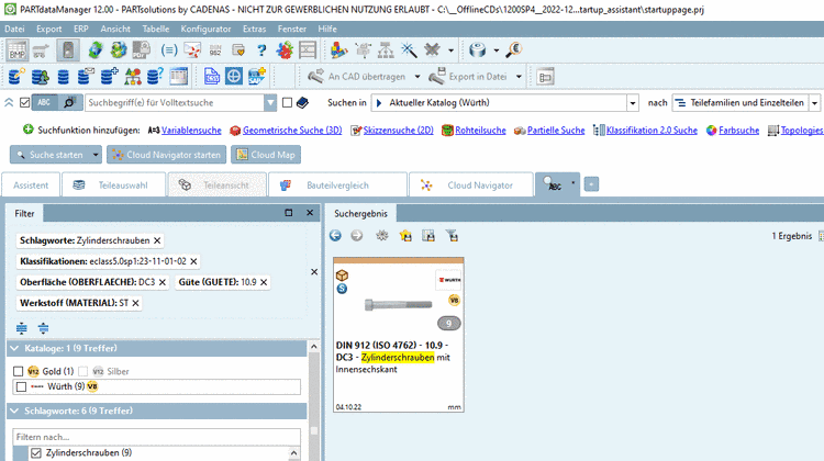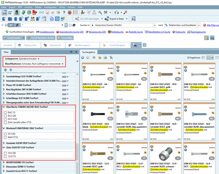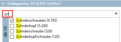 -> Im unserem Beispiel werden jetzt nur noch Zylinderschrauben angezeigt.