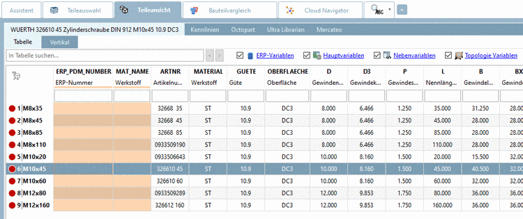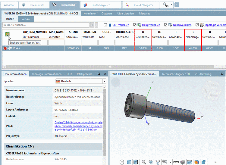 Spezifizieren Sie nun beispielsweise Gewindenenndurchmesser und Länge.