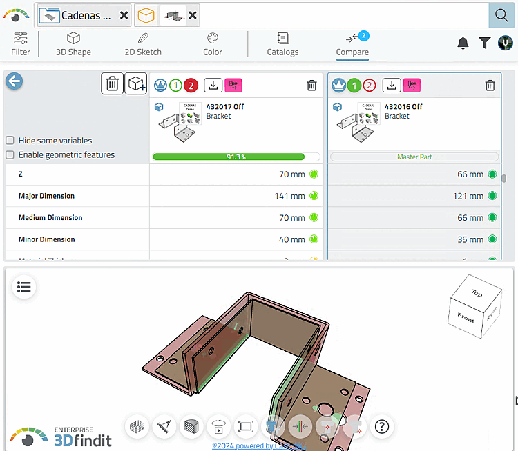 .-> Der Dialog Teilevergleich [Part compare] wird geöffnet.