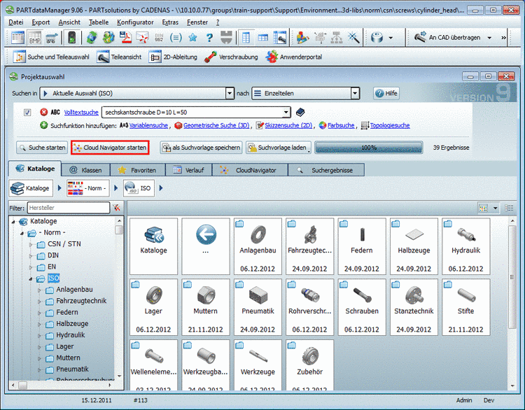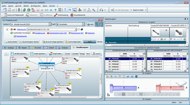 Bei der Cloud Navigator Suche erreichen Sie den Bauteilvergleich im Kontextmenü über Allgemeiner Kontext -> Bauteilvergleich.
