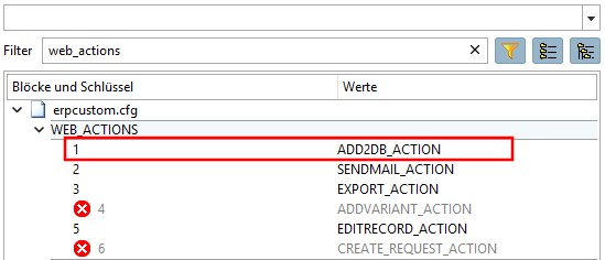 • Damit der Button in 3Dfindit angezeigt wird, muss in erpcustom.cfg, Block WEB_ACTIONS, der Schlüssel mit dem Wert ADD2DB_ACTION aktiviert sein.