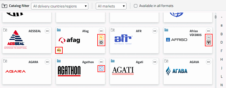 Katalog-Icons (Siegel, Attribute) werden in PARTproject unter Einstellungen [Settings] > Reiter Allgemein [General] > Allgemein [General] > Attribute [Attributes] angezeigt.
