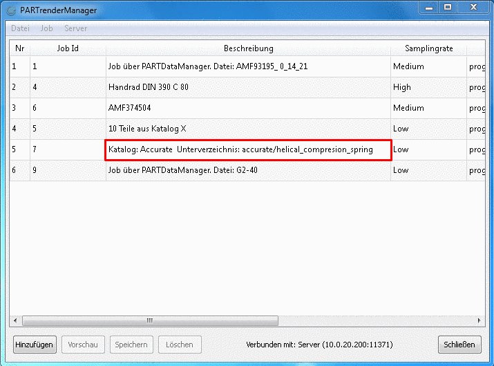 Über Export in Datei (eine einzelne Datei) kann direkt aus PARTdataManager heraus ein Job erstellt und an den Server übermittelt werden.