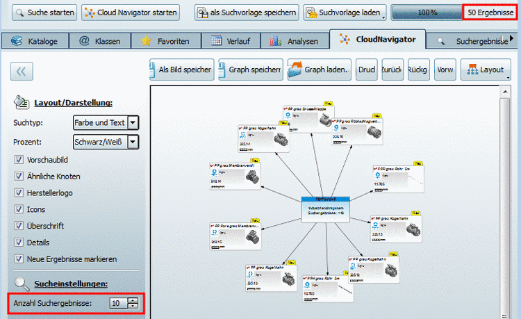 Werden die Ergebnisse im Cloud Navigator klein gezoomt, um alles in der Übersicht betrachten zu können, ist das Einblenden der Bauteilinformationen in groß hilfreich. Bewegen Sie hierzu den Mauscursor über das gewünschte Bauteil.