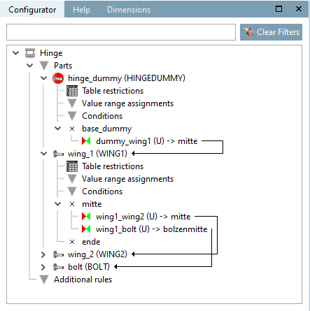 Nun werden Regeln definiert, die einen korrekten Aufbau des Assemblys gewährleisten.