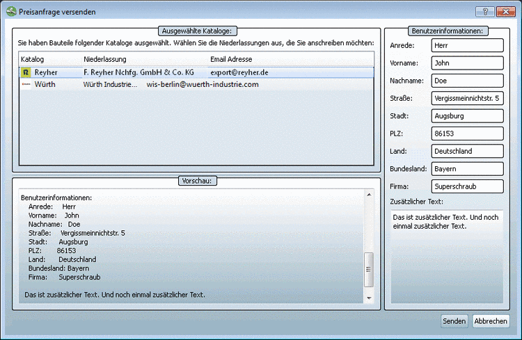 Außerdem gibt es noch die Möglichkeit Preisanfragen direkt im Bericht zu erstellen und von dort zu versenden.