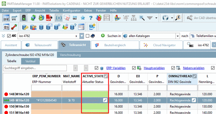 Der Screenshot unten zeigt das Ergebnis der Optionsänderungen: Einige rosafarbene Spalten wurden ausgeblendet, so dass nun die Spalte „ACTIVE_STATE“ ohne Scrollen sichtbar ist.