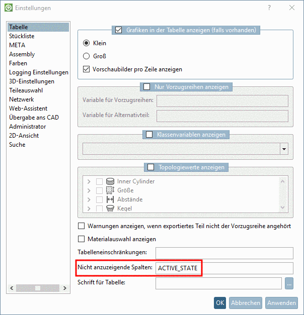 Bestimmte Einstellungen in PARTsolutions werden auf dem lokalen Arbeitsplatzrechner gespeichert und können vom Benutzer selbst geändert werden. Hierzu gehören z.B. die Favoriten oder eine Auflistung von zu unterdrückenden Spalten.