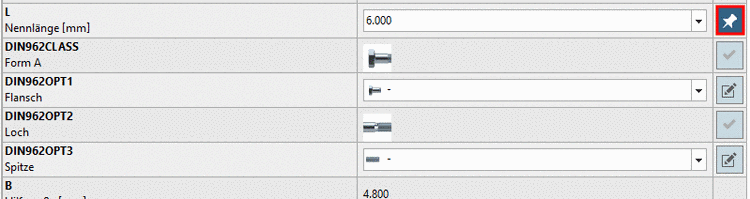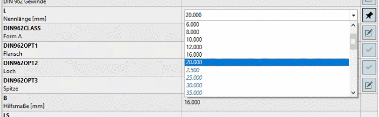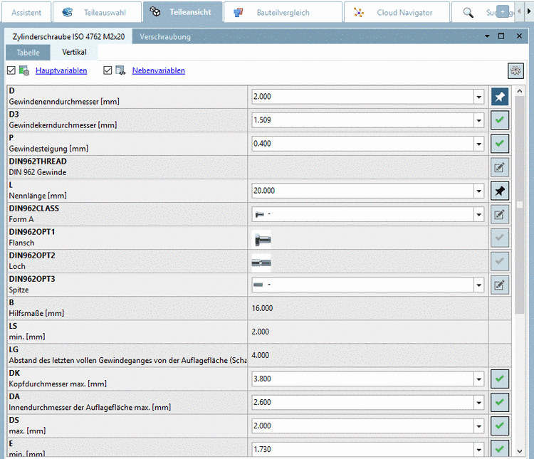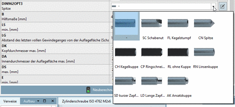 Bei allen übrigen Variablen kann das Bauteil über Listenfeldauswahl spezifiziert werden.