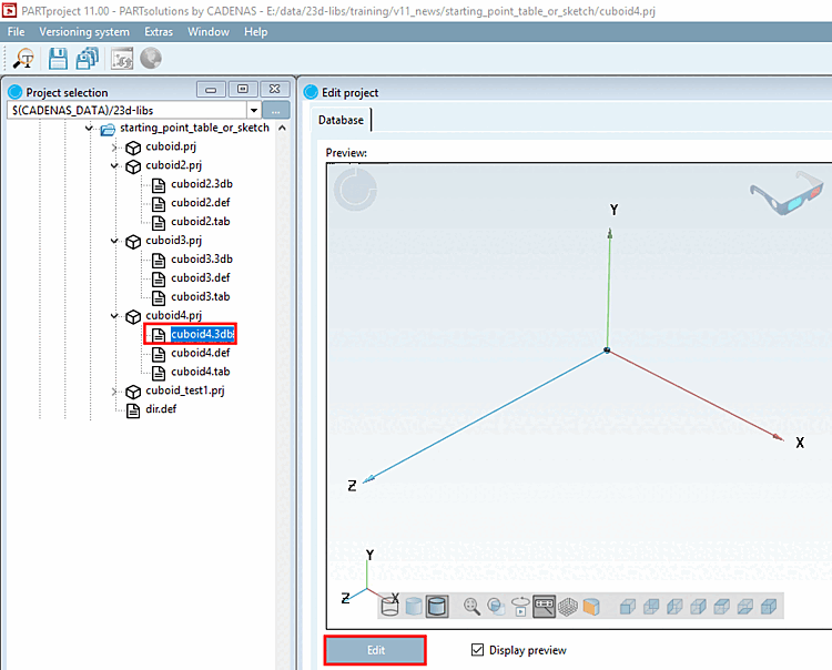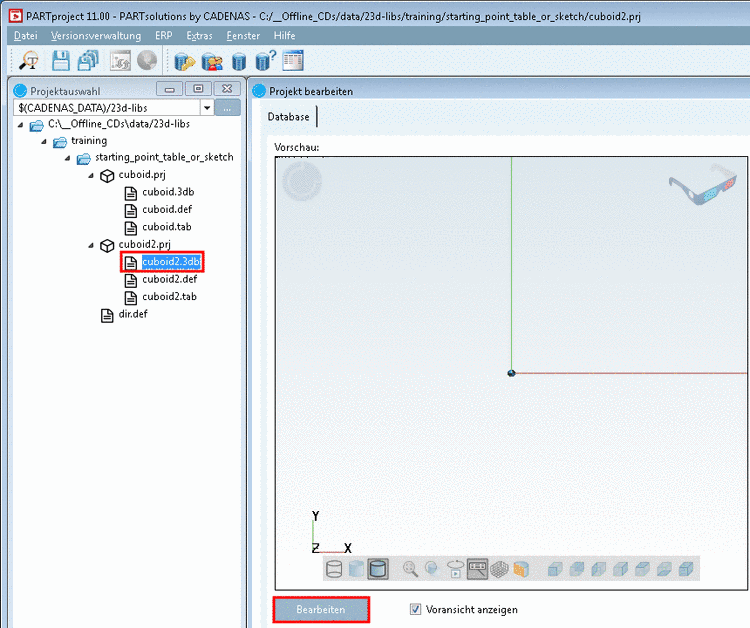 Markieren Sie im zu bearbeitenden Projekt die *.3db-Datei.