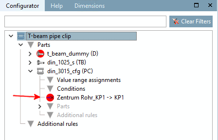 -> Die Regel "Zentrum Rohr_KP1 -> KP1" ist in den Verzeichnisbaum eingefügt.