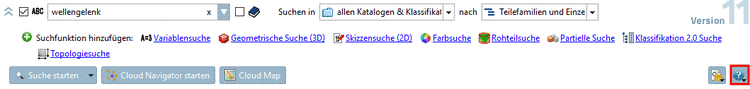 Detaillierte Informationen hierzu finden Sie unter Abschnitt 3.1.6.1.1, „Suchen in...: Wo?“ und Abschnitt 3.1.6.3, „Suche nach Einzelteilen | Teilefamilien und Einzelteilen“.