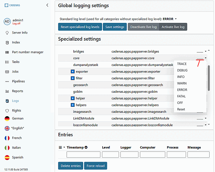 Eine ausführliche Beschreibung hierzu finden Sie unter Abschnitt 1.3.16, „ Logging Einstellungen “.