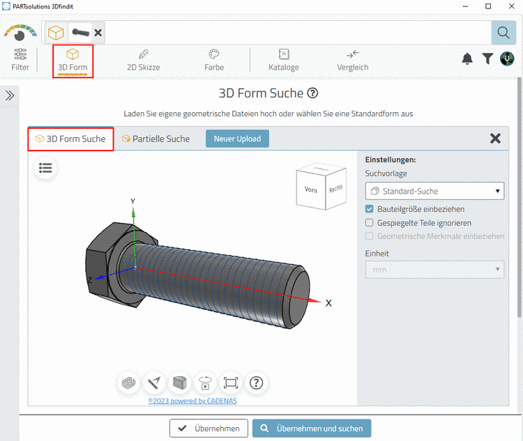 Dies kann a) zum Ausschluss von Teilen führen (wenn die Features abweichen) oder b) zu einem höheren Ranking (wenn die Grundform nicht besonders ähnlich ist, aber die geometrischen Merkmale sehr ähnlich sind).