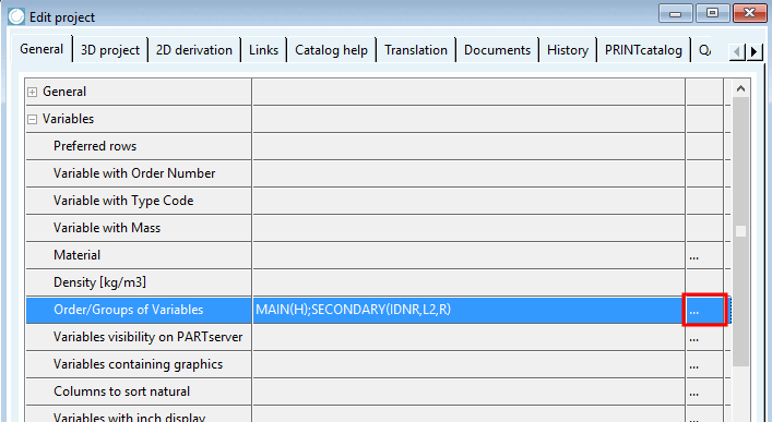 Klicken Sie in PARTproject unter Projekt bearbeiten [Edit project] -> Registerseite Allgemein [General] -> Abschnitt Variablen [Variables] -> Reihenfolge/Gruppen der Variablen [Order/Groups of Variables] auf den Button .
