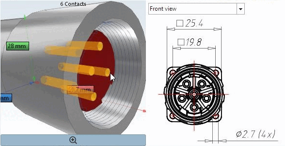 Wenn Sie für einen Stecker eine Buchse suchen, werden Sie die Stifte markieren. Aber die Lochlänge in der Buchse könnte unterschiedlich sein. Setzen Sie die Option Zylinderlängen ignorieren [Ignore cylinder lengths].