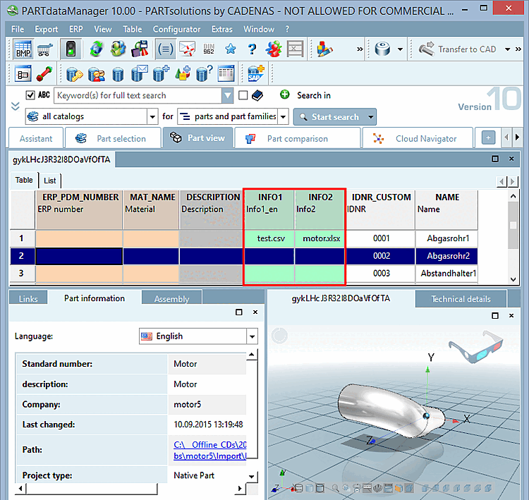 Nach einem Katalogexport erscheint das Attribut als grüne Dokumentenspalte im PARTdataManager.